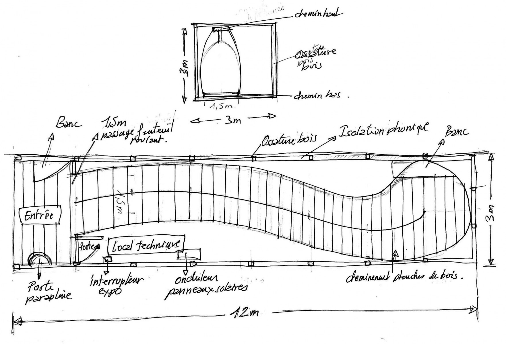 À l’intérieur d’un container de 40 pieds, une structure faite de bois et de végétaux accueille le visiteur, qui chemine en suivant une forme inspirée des trouées de forêt – ces passages secrets empruntés par les animaux.