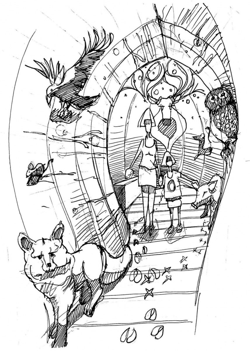 Des sculptures d’animaux en bois, grandeur nature, jalonnent le parcours. Des sons de nature se déclenchent au passage des visiteurs, une odeur d’humus emplit l’air, tandis qu’une lumière tamisée renforce l’idée d’un passage initiatique.