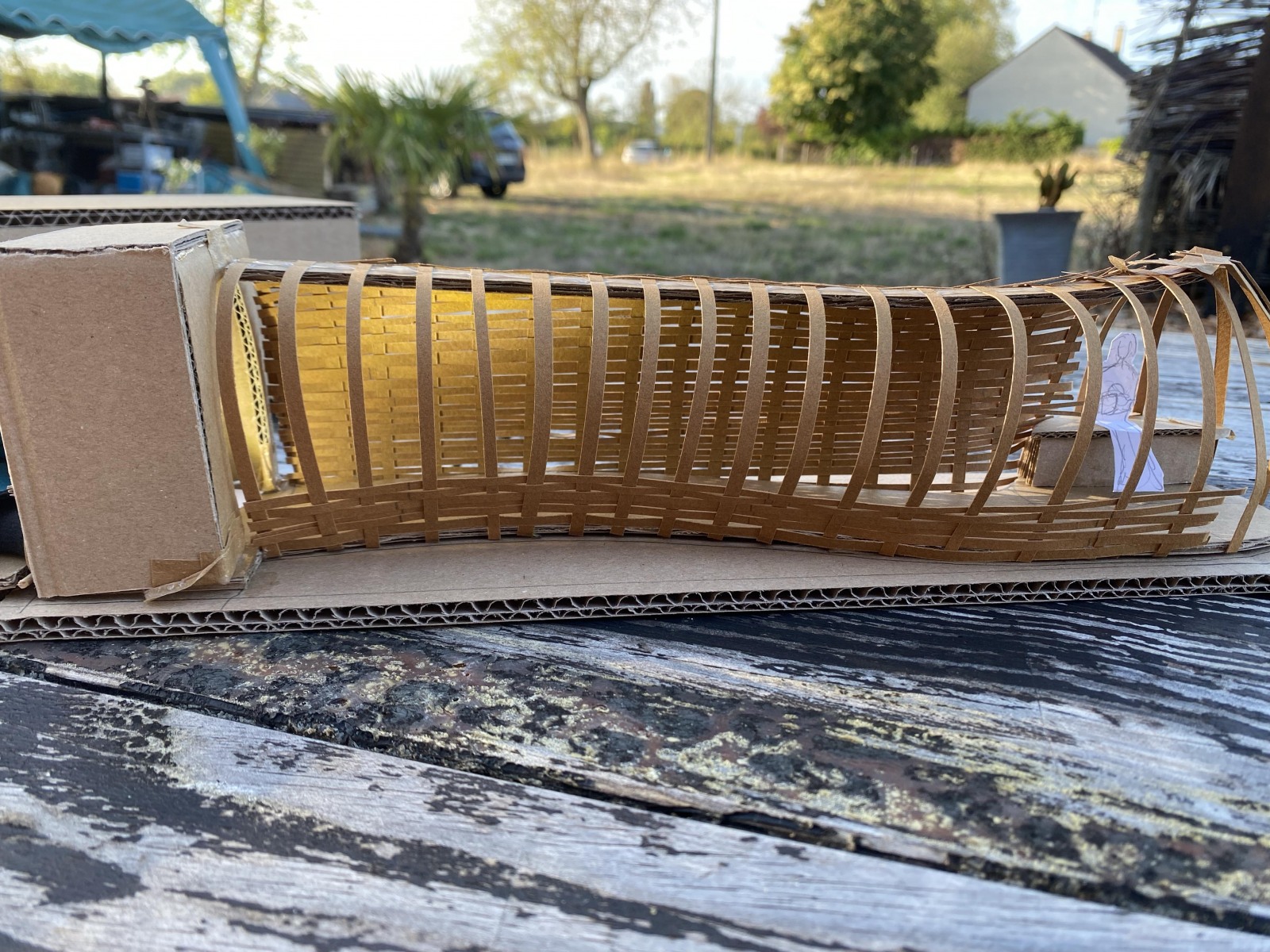 À l’intérieur d’un container de 40 pieds, une structure faite de bois et de végétaux accueille le visiteur, qui chemine en suivant une forme inspirée des trouées de forêt – ces passages secrets empruntés par les animaux.