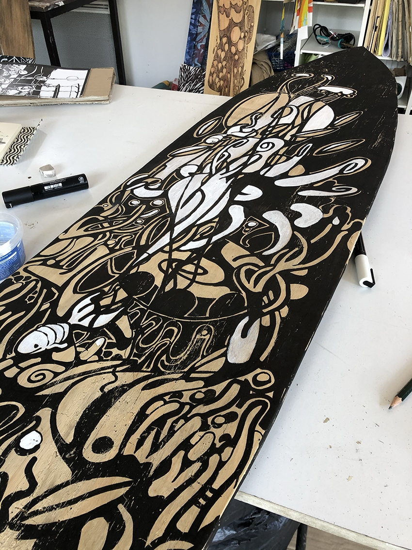 Sculptures chêne, pyrogravure, feuille d'or Image 1 parmi 3 Tā moko : résineux, pyrogravure Image 1 parmi 2 Sirène, tilleul et métal Image 1 parmi 3 bois brulé Image 1 parmi 3 Funboard Image 3 parmi 6